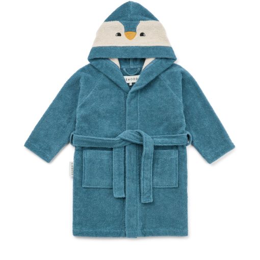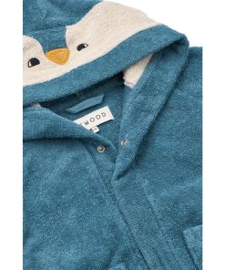 Snugly bathrobe with cute animal details and ears on the hood in soft organic cotton. The practical press buttons down the front will help the robe stay closed, and the dense terry quality will keep little ones dry and cosy after bathtime.