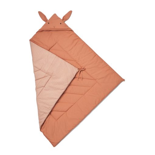 Snuggle up in the soft Daxton cotton wrap. Crafted from 100% organic cotton and recycled polyester, this wrap features a cute hood with rabbit face embroidery and ears attached at the top seam. With a string closure and loop to fasten around a button, this comforter-styled wrap is perfect for keeping your little one warm and cosy.
