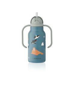 Innovative and toddler-friendly, the KIMMIE water bottle has two easy handles on the lid, a built-in straw and is made of 80% recycled premium stainless steel. It is designed to be easy for little hands to handle when learning to tilt and drink water on their own.