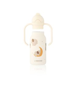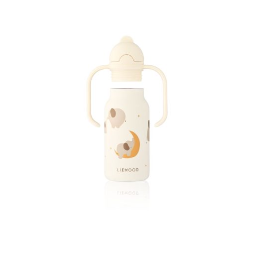 Innovative and toddler-friendly, the KIMMIE water bottle has two easy handles on the lid, a built-in straw and is made of 80% recycled premium stainless steel. It is designed to be easy for little hands to handle when learning to tilt and drink water on their own.
