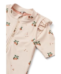 Protective and playful, the AMEL shot-sleeve swim jumpsuit combines UV40+ protection with decorative ruffle details and summery colours, making it an ideal choice for sunny days spent at the beach or by the pool. Made from quick-drying, stretchy fabric, and with a zipper in the centre front, makes it easy for little ones to put on.
