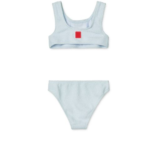 Let your little one jump into the pool or dive through the waves in the sporty new Bello bikini. The crinkle fabric ensures a snug fit great for swimming, while the brightly coloured silicone logo at the back offers a cool contrast to the muted colour of the bikini.