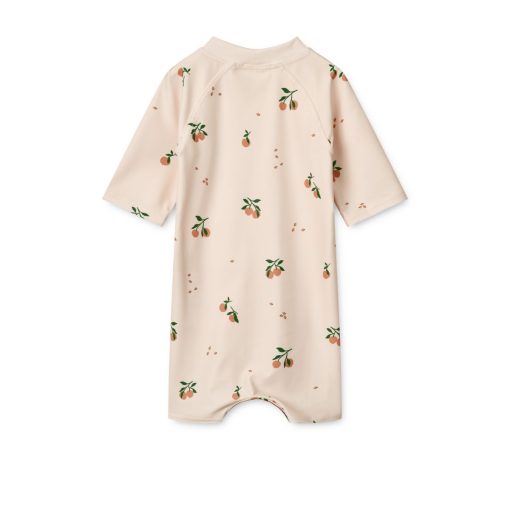 - Short-sleeved baby swim jumpsuit with UV40+ protection